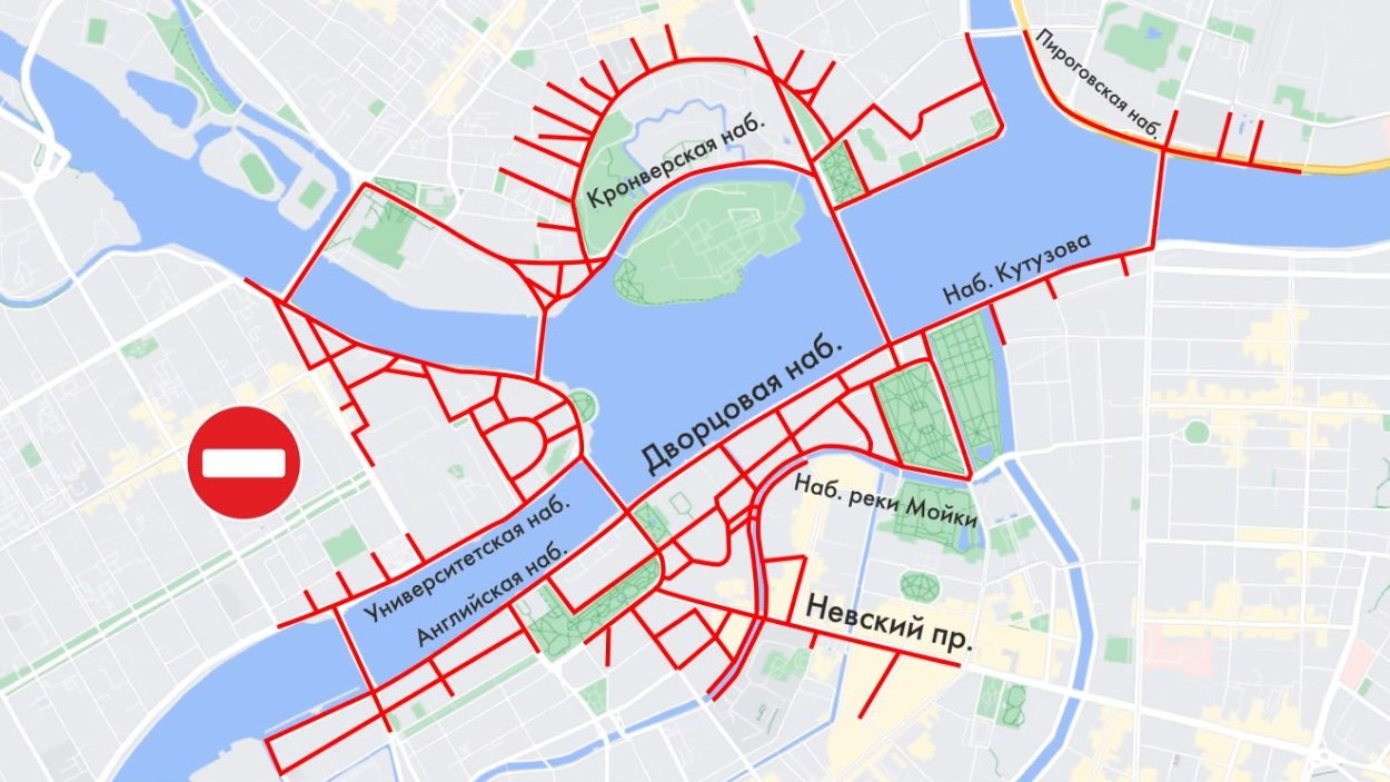 Перекроют также Невский проспект, Дворцовую, Адмиралтейскую, Университетскую набережные и прилегающие к ним улицы, а также территории на Петроградской стороне и Васильевском острове.