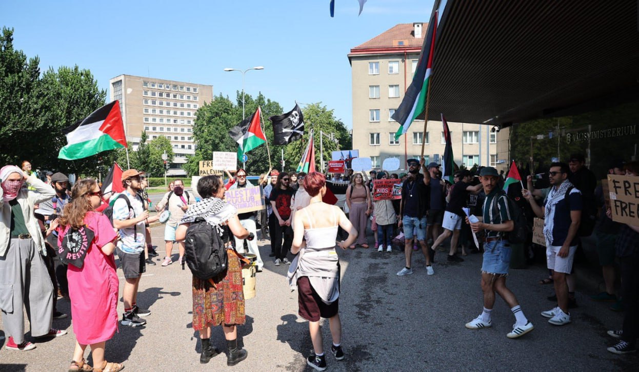 🇪🇪 Протестующие в Эстонии потребовали от своего МИД прекратить поддержку агрессии и нарушения международного права — остановить сотрудничество с Израилем. "Прискорбно слышать, как наш министр иностранных дел восхваляет партнёрство со страной, которая уже 20 месяцев совершает военные преступления", — заявила одна из протестующих Мария Мирьям Тали. Участники митинга также требовали отменить решение об открытии посольства Израиля в Эстонии.