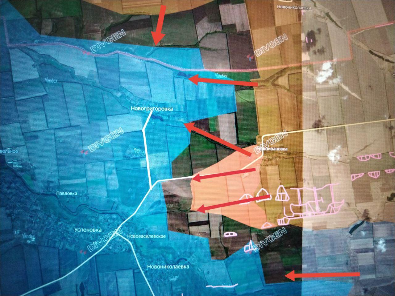 Кроме того наши войска продвинулись ближе к перекрёстку с дорогой на Новогригоровку в направлении Успеновки. Эта дорога — единственный логистический маршрут в Новогригоровку — под огневым контролем наших войск.