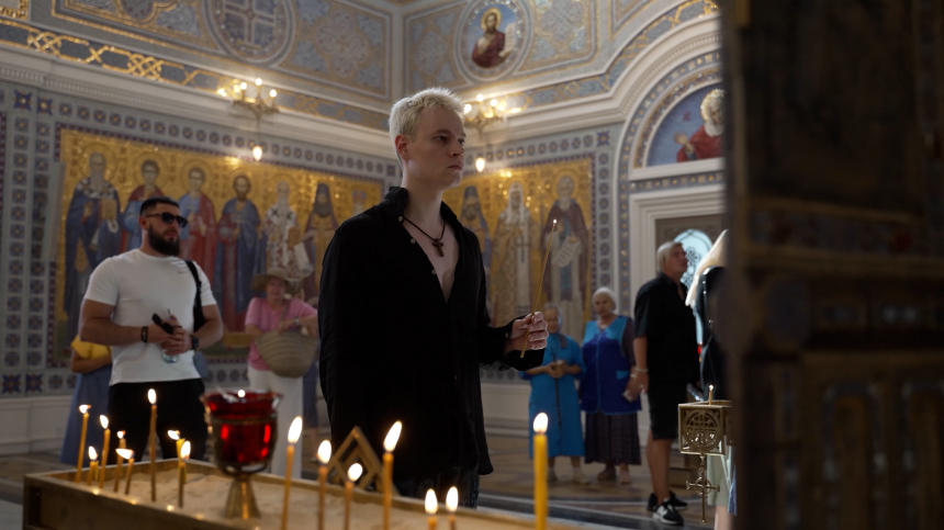 В сопровождении отца Антония Камальдинова, который провел обзорную экскурсию, артист прошел по территории заповедника и подробно познакомился с историей Свято-Владимирского собора. Храм был построен прямо на месте древних развалин — тех самых, где, согласно преданию, крестился князь Владимир. Во время экскурсии SHAMAN отметил, что для него важно не просто побывать в этом месте, а действительно прочувствовать его атмосферу.