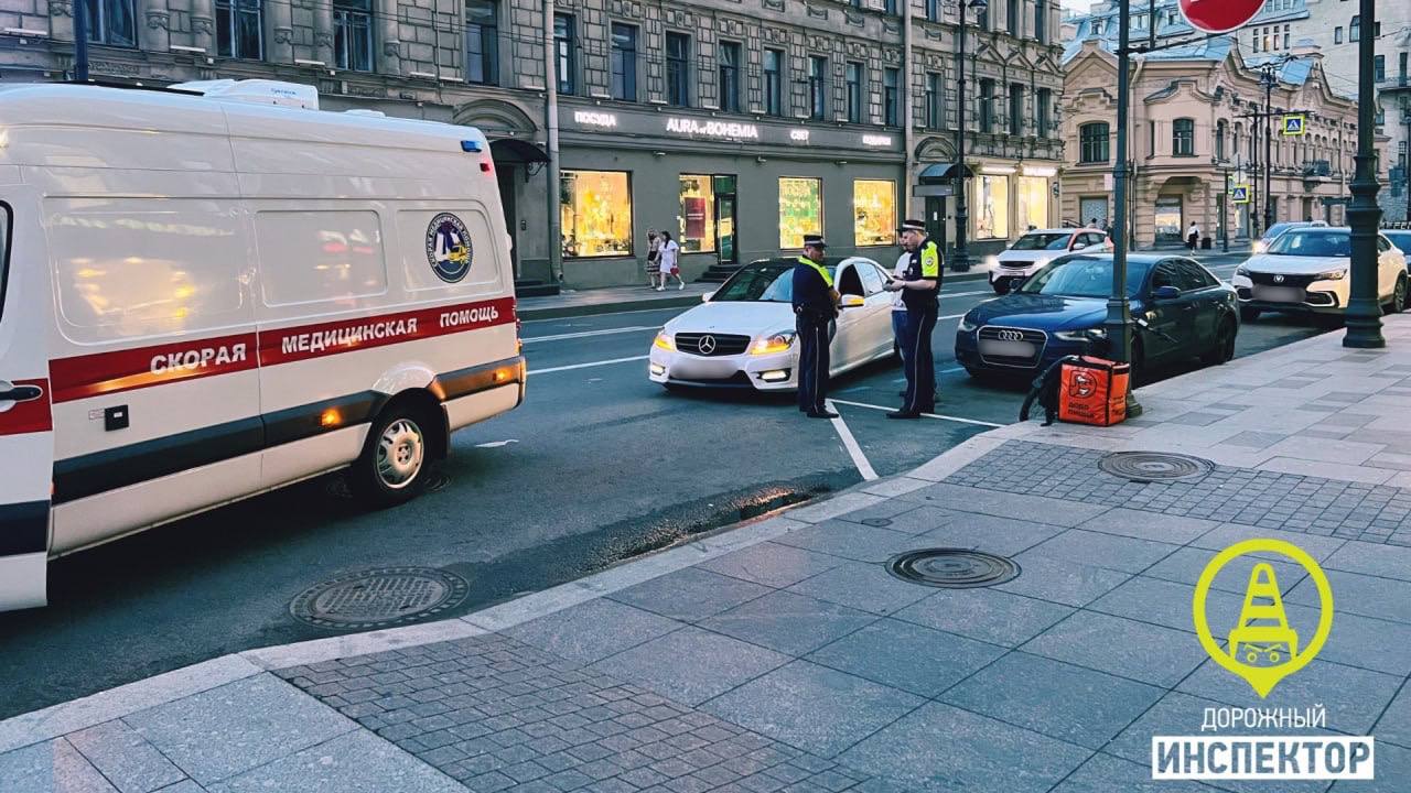 В Петроградском районе белый Mercedes сбил доставщика с ног с велосипеда