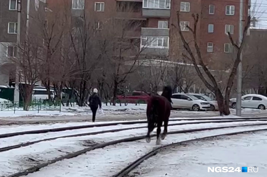 Видео с животным в редакцию NGS24.RU прислала читательница. По ее словам, она заметила лошадь на улице Щорса, — та бежала по трамвайным путям в сторону 60 лет Октября. Девушка сообщила об этом в полицию.