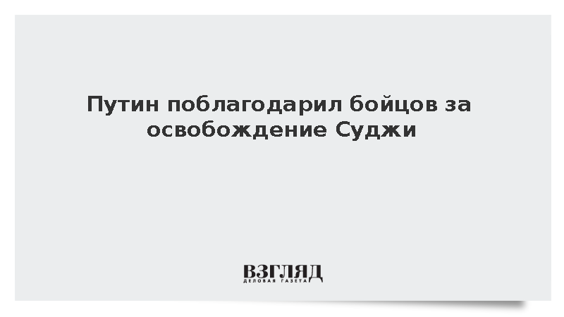Президент России Владимир Путин выразил благодарность бойцам, освободившим Суджу и прилегающие населенные пункты в Курской области.