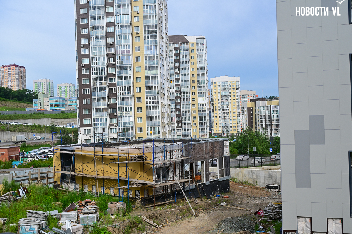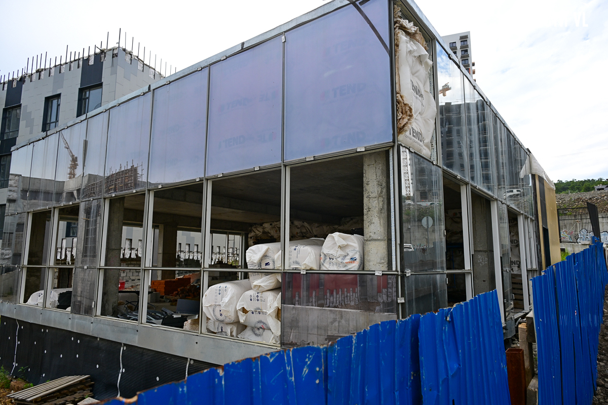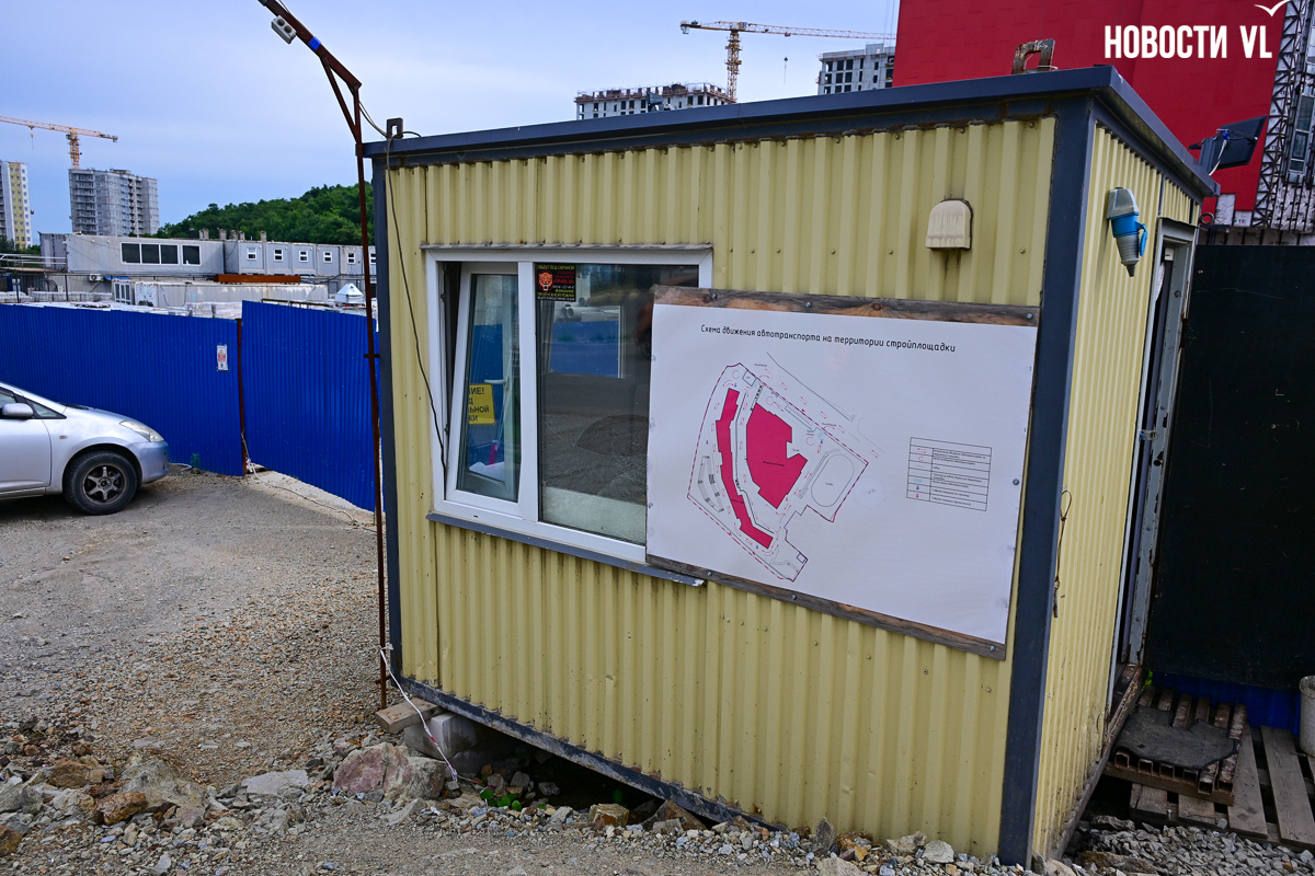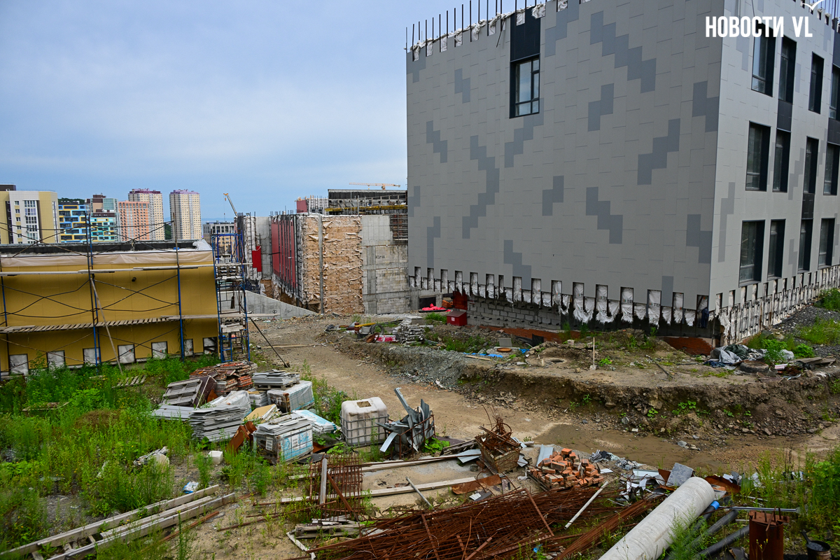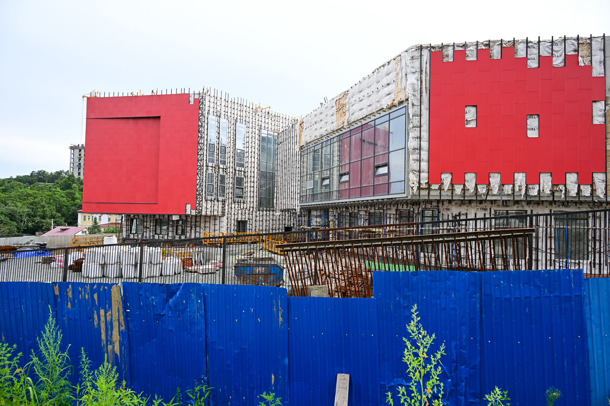 Школа строится очень неспешно. В начале года губернатор и глава Владивостока намеревались проводить еженедельные обходы строящихся объектов и даже пару раз заглянули в будущее образовательное учреждение. Каждый раз говорили о наращивании темпов, но в последний раз новости со школы от губернатора были в апреле, а от мэра – вообще в январе. Сегодня фотограф Новостей VL обошёл всю строительную площадку и не увидел там ни единой работящей души, только охранника.