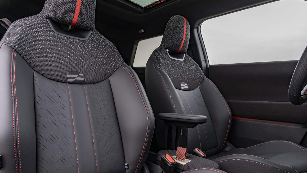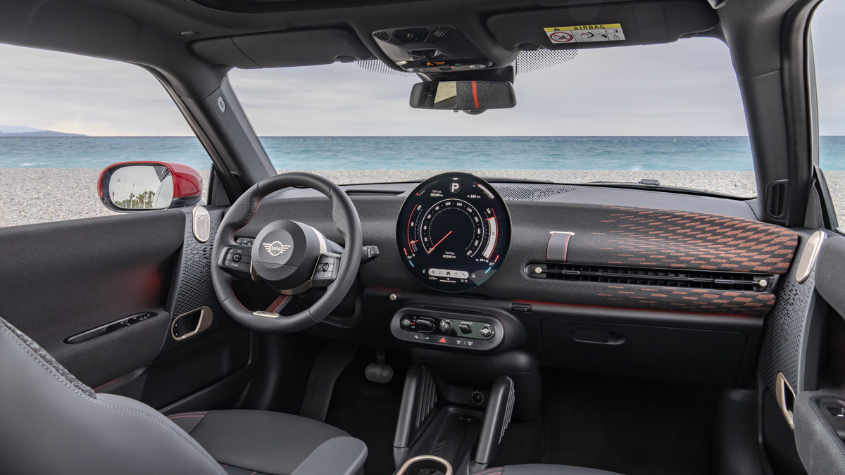 Салон тоже получил несколько обновок. Так, Cooper SE JCW снабдили спортивными креслами, которые отделаны экокожей с красной прострочкой. В той же чёрно-красной гамме выполнены передняя панель и рулевое колесо. Информационно-развлекательная система электрокара позволяет активировать ездовой режим Go-Kart, который помимо прочего меняет подсветку салона на красную.