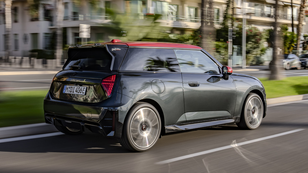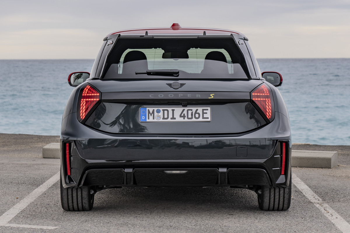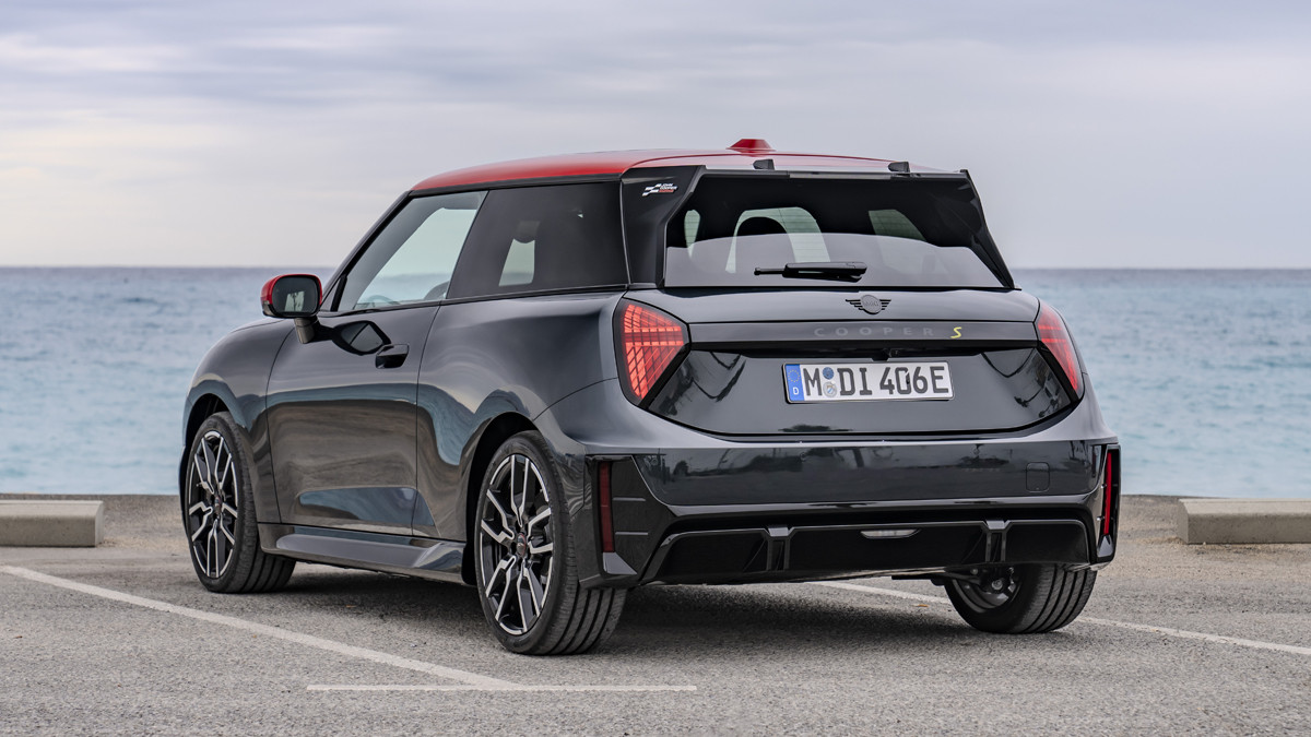Кузов Cooper SE JCW окрашен в фирменное сочетание чёрного и красного цветов, с указанием на особую версию: надписи можно увидеть на передней части, а также на накладках, которые являются боковинами спойлера, размещённого в верхней части багажной двери. На корме эмблема тоже оформлена в чёрном цвете, а на красной крыше имеется антенна «акулий плавник», окрашенная в тон.