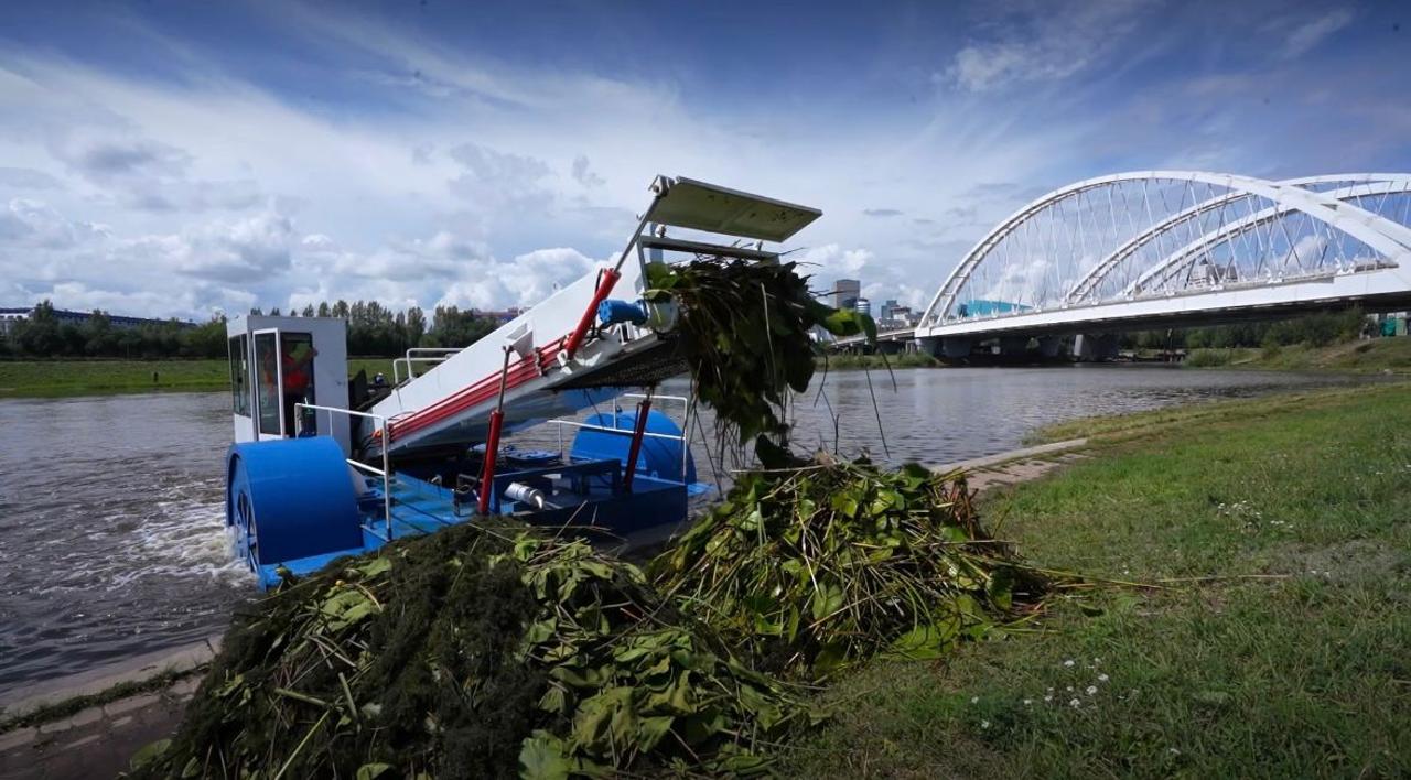 В работах задействовано более 30 человек. Используя мусоросборные сети, сачки, газонокосилки, триммеры и специализированную технику для вывоза отходов, они очищают водную гладь и берега. Отдельное внимание уделяется удалению сорной растительности, которая искажает природный облик набережной и препятствует формированию ухоженного городского ландшафта.