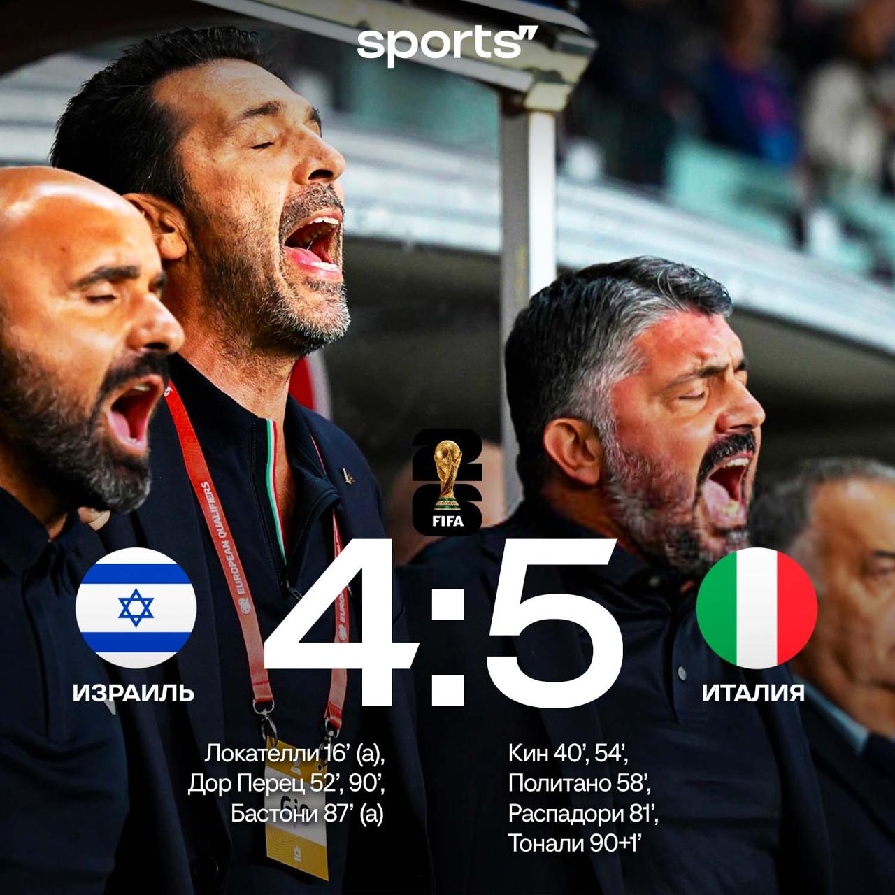 😳🇮🇹 Невероятный матч Италии с Израилем заканчивается победой итальянцев! Команды забили друг другу пять голов с 81-й по 91-ю минуту – из четырех пропущенных мячей два итальянцы забили себе сами