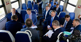 На открытии тактового движения электричек до Мельничного ручья рассказали о новых проектах Петербурга и Ленобласти. Рабочее совещание провели прямо в электричке.