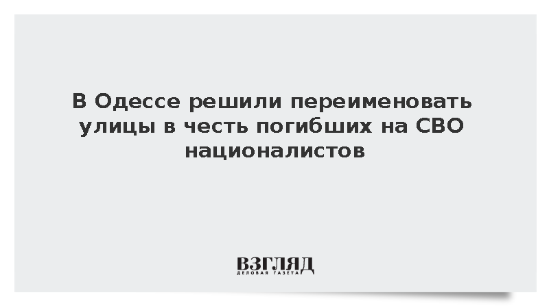 Власти Одессы на юге Украины собираются назвать четыре улицы именами погибших в зоне спецоперации националистов из организации «Правый сектор*» (признана экстремистской и запрещена в России), формирования «Азов» (признано в РФ террористической организацией) и военнослужащих Военно-морских сил ВСУ.