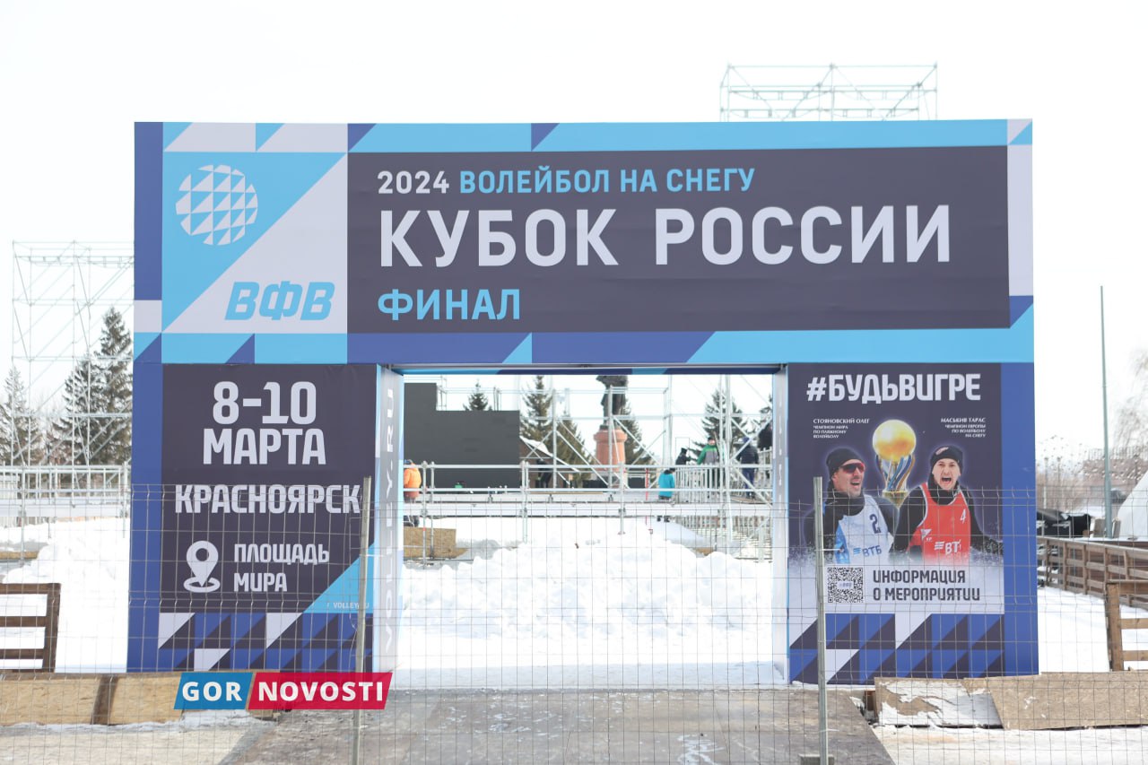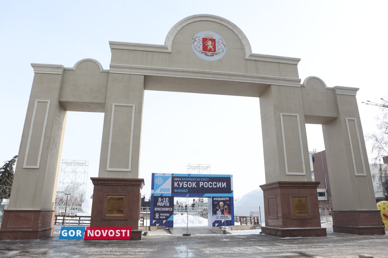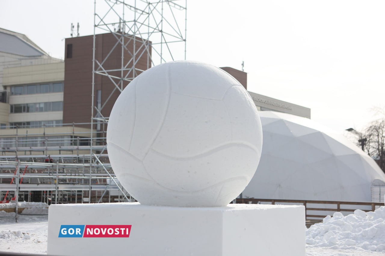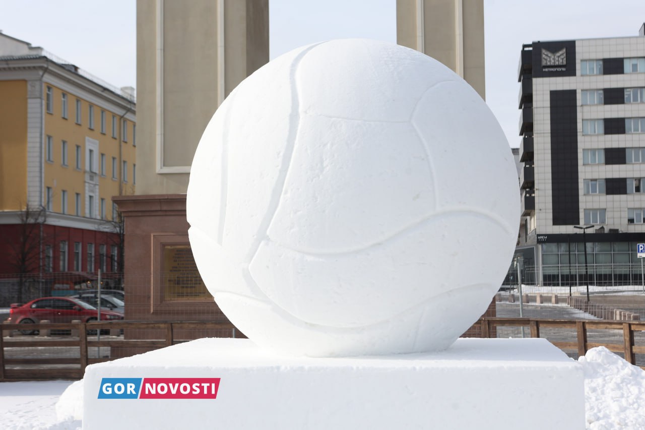 Наш Михаил Шуклин заметил, что на площади Мира уже почти готова площадка для финала кубка России по волейболу на снегу. Там появился огромный мяч из снега!