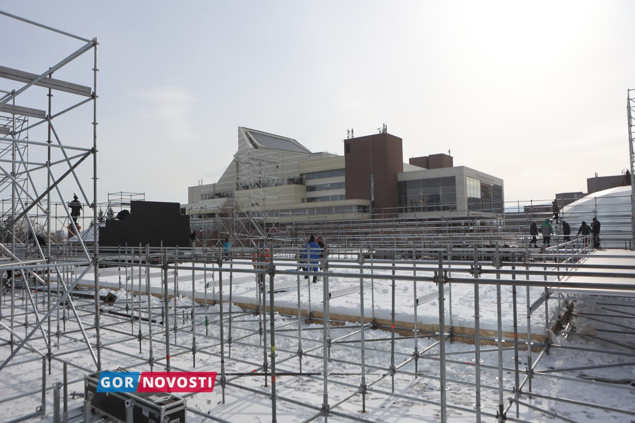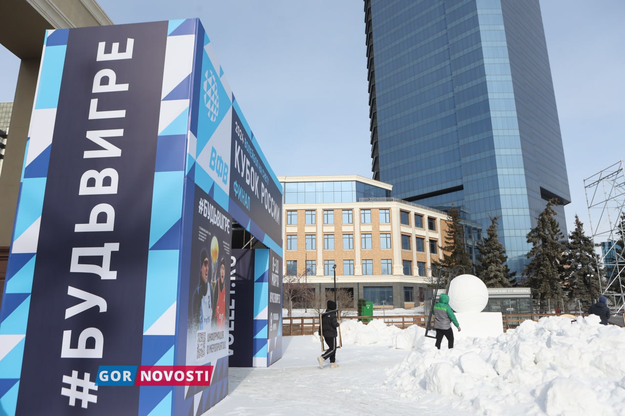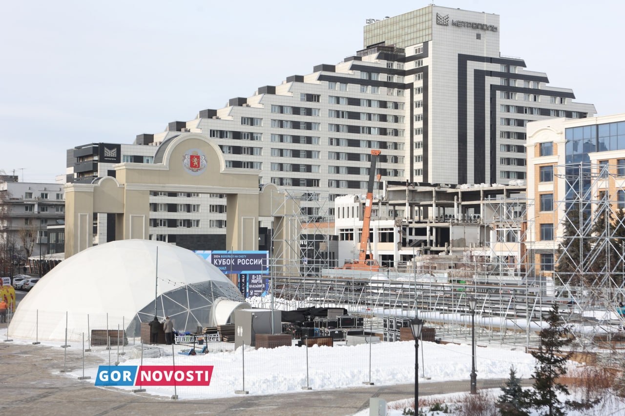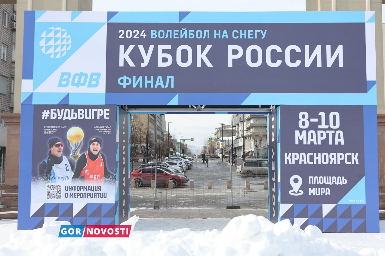Наш Михаил Шуклин заметил, что на площади Мира уже почти готова площадка для финала кубка России по волейболу на снегу. Там появился огромный мяч из снега!