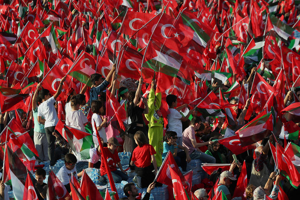 На «Великий палестинский митинг» в стамбульском аэропорту Ататюрк пришли 1,5 млн человек, сообщает Sabah. Там выступил президент Турции Реджеп Тайип Эрдоган, который назвал действия Израиля в Газе военными преступлениями.