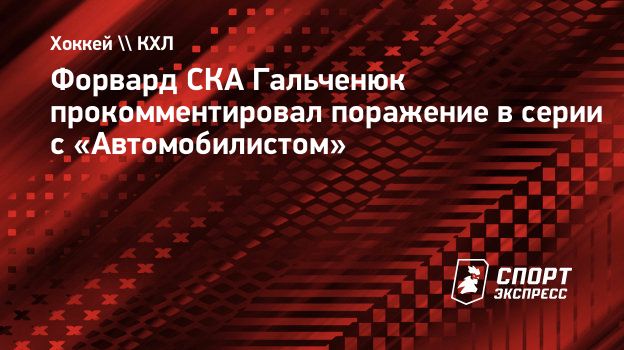 Форвард СКА Алекс Гальченюк прокомментировал вылет своей команды из Кубка Гагарина.