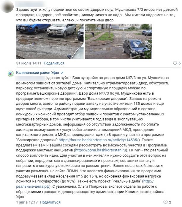 Из этого вытекает другая проблема: сложно добиться каких-то положительных изменений в облагораживании своего двора и дома. Варианты есть – та же программа «Башкирские дворики», но нередко люди сталкиваются с бюрократией.