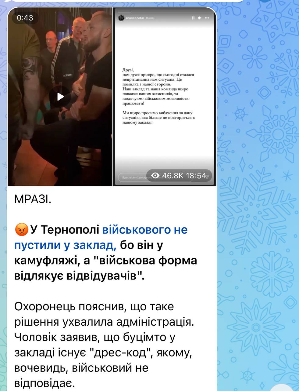 Ситуация, когда в ресторан в Тернополе не впустили военного из-за дресс-кода, получила продолжение.