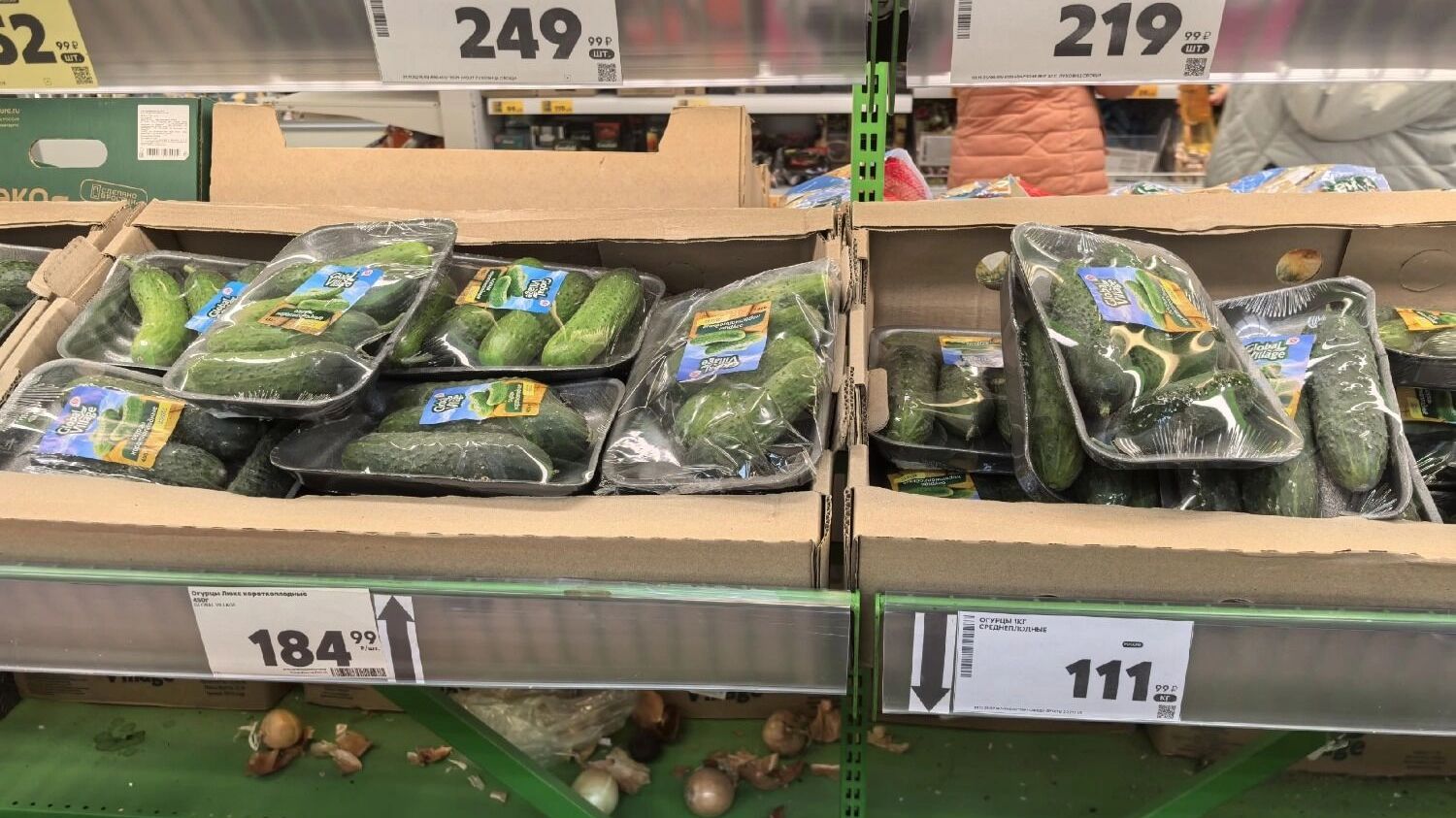 Такая же ситуация в сетевых магазинах и с огурцами. Везде можно увидеть среднеплодные гладкие огурцы, но мало где есть короткоплодные пупырчатые. Стоит отметить, что в отличие от помидоров, которые взлетели в цене, некоторые виды огурцов можно купить существенно дешевле, чем в прошлом году — всего за 79 рублей. Средняя цена на этот овощ в конце октября 2024 года составляла 148,5 рубля.