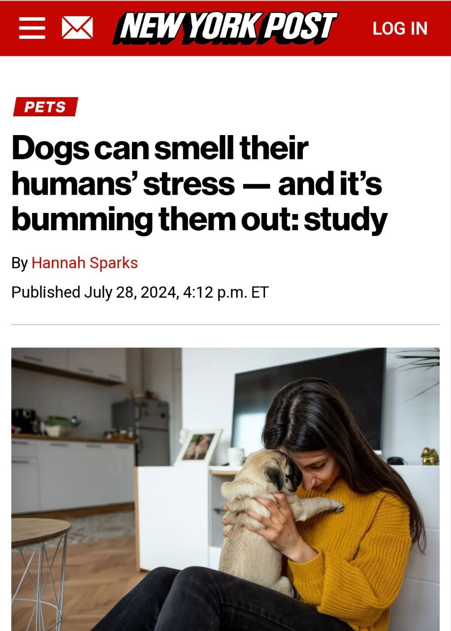 Исследование дня: собаки чувствуют стресс своих хозяев — это даже может испортить им настроение.