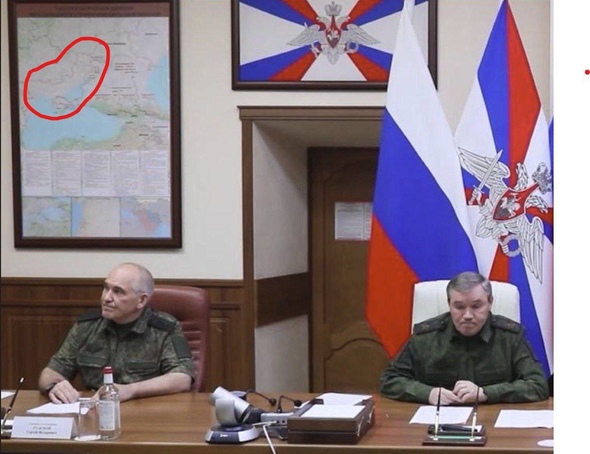 Укросми буквально взорвались - все показывают эту карту, которая висит на стене в Генштабе РФ, - а это было показано на официальном канале Минобороны РФ во время выступления начальника Генштаба РФ.