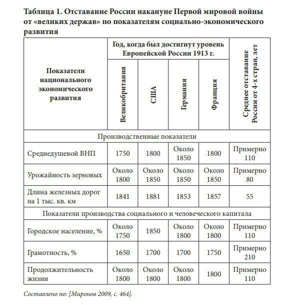 Насколько сильно отставала Россия по социально-экономическим показателям от развитых стран в начале ХХ века. Страшный ХХ век объясняется в том числе этим - желанием рывком сократить отставание.