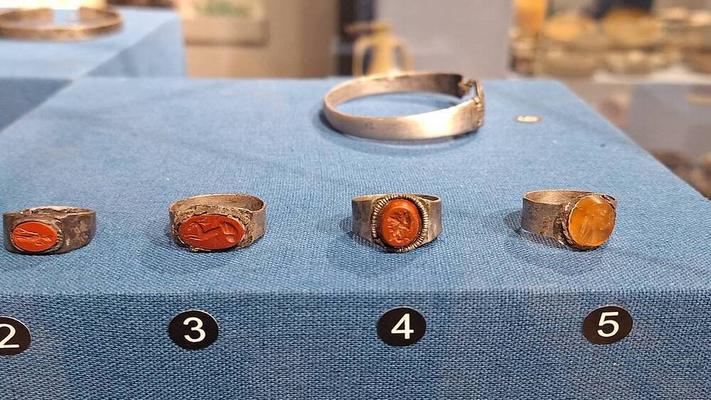 Археологи обнаружили редкие серебряные перстни с геммами (драгоценные или полудрагоценные камни, на которых выполнена резьба) в Симферопольском районе Крыма, в могильнике Опушки. На геммах, выполненных из сердолика и яшмы, вырезаны изображения, предположительно, Водолея и воина в шлеме. Эти находки, датируемые III веком нашей эры, уникальны по сохранности, сообщает ТАСС.