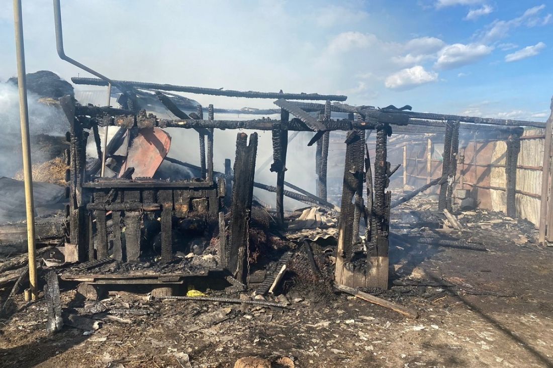 В результате пожара была уничтожена надворная постройка, расположенная на территории домовладения, сгорело и повреждено 18 тюков сена. Кроме того, был травмирован мужчина 1964 года рождения.