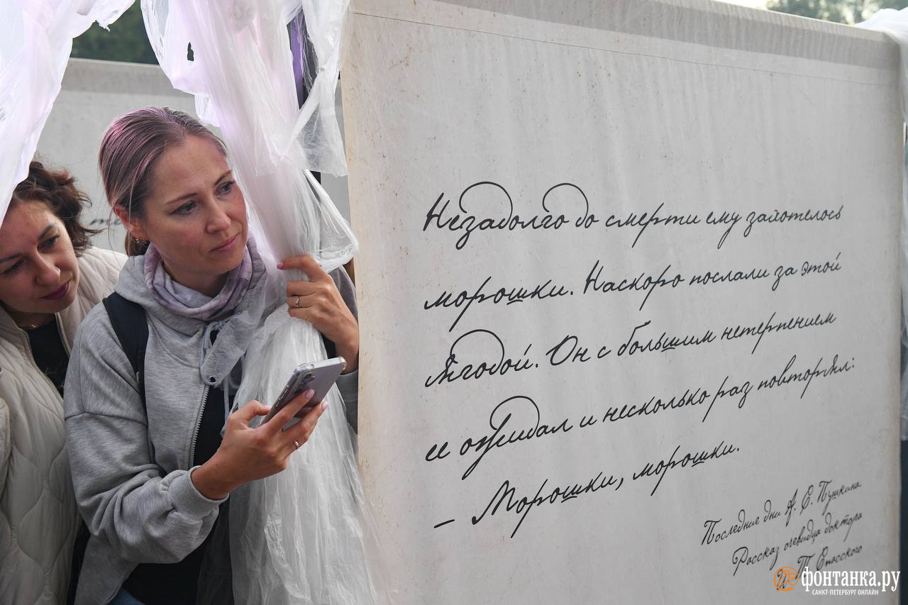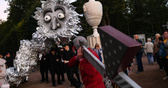 «Друзья, не стесняйтесь, обнимайтесь с императором! — призывали артисты театра «Кукольный формат», ведя под руки гигантскую куклу Петра I, плавно двигавшуюся по аллеям в компании Пушкина и музыкантов. — Если замерзли, согреем друг друга теплом!»