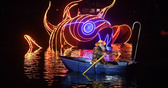 Впрочем, «остранение» на фестивале было запланированным художественным приемом. Так, лоскутное одеяло цитат из пушкинских сказок, сопровождавшее мэппинг-шоу на Большом каскаде, приковывало внимание к отдельным фразам, заставляя их слышать по-новому. Это в детстве слова про «гроб хрустальный» воспринимались не критически (ну а какой еще гроб может быть в сказке?), а 33 богатыря казались огромной силой, — а с возрастом понимаешь, что это отнюдь не терракотовая армия (однако многолюдное шествие на проекции напоминало, скорее, ее).