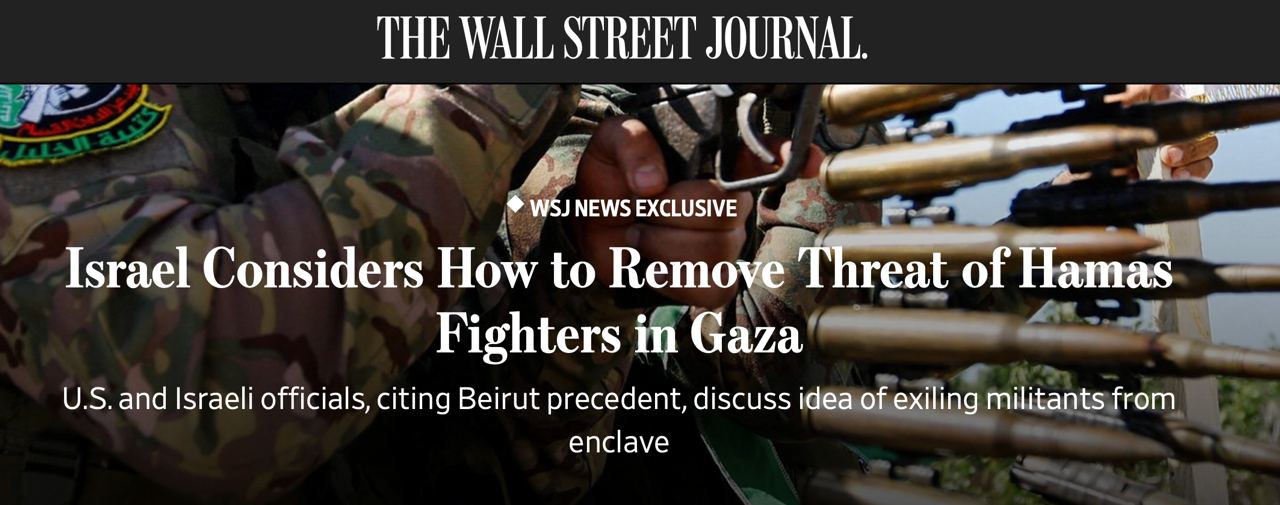 🇺🇸🇮🇱 WSJ: США и Израиль обсуждают изгнание боевиков ХАМАС из Газы как способ «сократить войну»