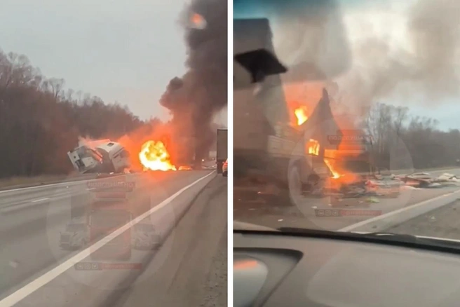 После столкновения фуры загорелись. На трассе в Нижегородской области произошло смертельное ДТП — видео