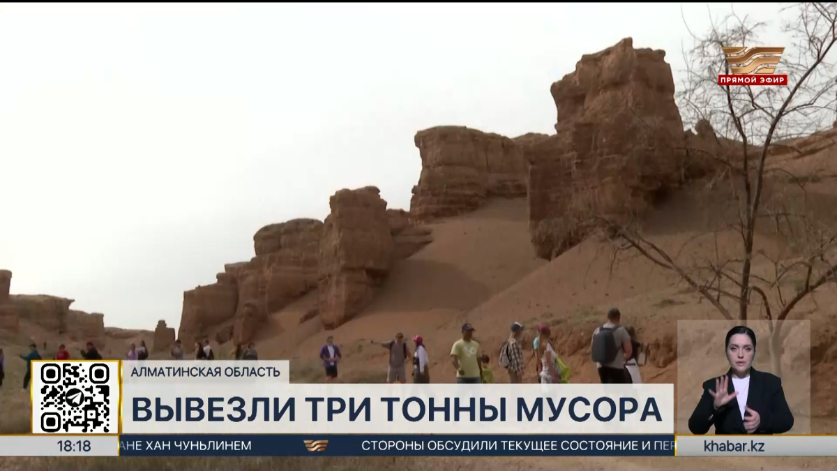 Экологическую акцию провели на территории Чарынского каньона. Молодежные активисты Уйгурского района и студенты алматинских вузов очистили территорию национального парка от бытовых отходов. К сожалению, не все туристы соблюдают санитарно-экологические правила во время отдыха. В этот раз волонтеры собрали три тонны мусора. Жители села Шонжы тоже внесли свой вклад в сохранение экосистемы родного края. Школьники собрали тысячи шишек можжевельника, и посадили их в специальные горшочки. Когда сеянцы подрастут, их пересадят на территорию природного парка.