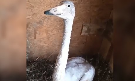 Лебедя заметили у лодочной станции в посёлке Суда.