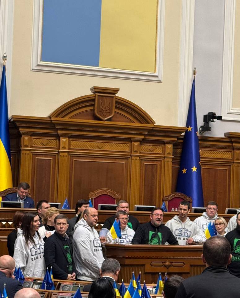 В Парламенте умирающего государства празднуют выпуск новой компьютерной игры.