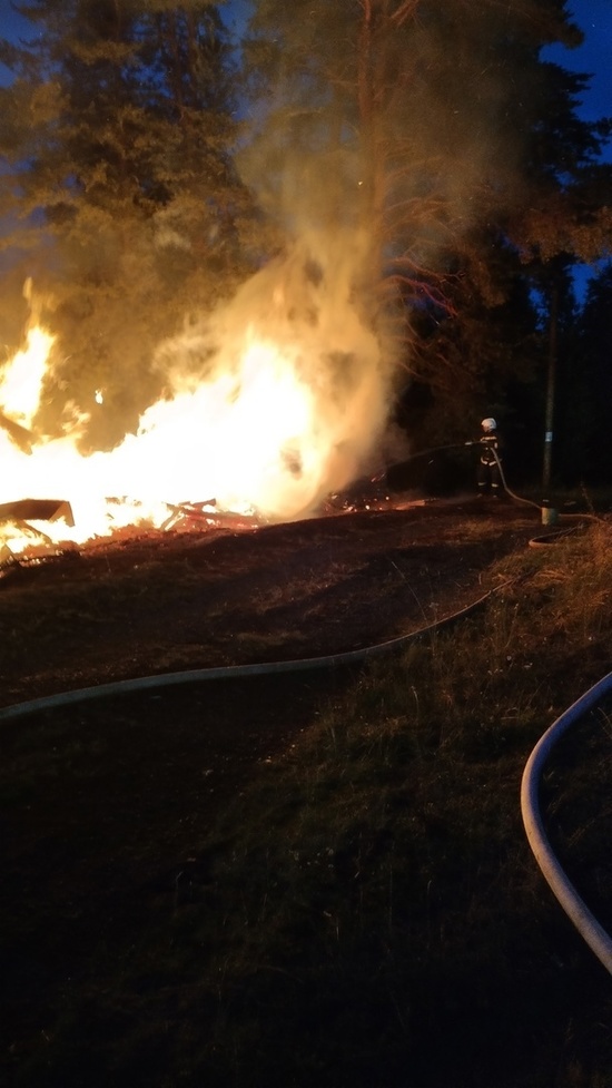 Хозпостройки полыхали глубокой ночью в Карелии