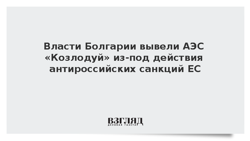 Правительство Болгарии приняло решение временно вывести АЭС «Козлодуй» из-под действия антироссийских санкций Евросоюза, сообщает Болгарское национальное радио (БНР).