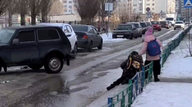 Детям приходится ежедневно проходить через оживлённый внутриквартальный проезд, где видимость ограничена припаркованными авто. На проезжую часть можно легко выйти – низкий забор перешагивает даже первоклассник, сообщили добровольцы.