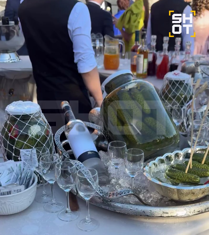 Среди известных гостей на свадьбе актрисы и аккордеониста замечены актриса Евгения Осипова, бывшая Прилучного Рената Пиотровски, худрук театра-кабаре Crave Василий Козарь с женой. Сам бывший Агаты, Прилучный, в этот день отмечал годовщину со второй женой Зепюр Брутян. Их свадьба в 2022 году оценивалась в 5 млн.