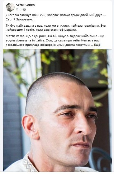 Российские военные ликвидировали командира 110-й бригады ВСУ полковника Сергея Захаревича, предположительно, это произошло в Сумской области
