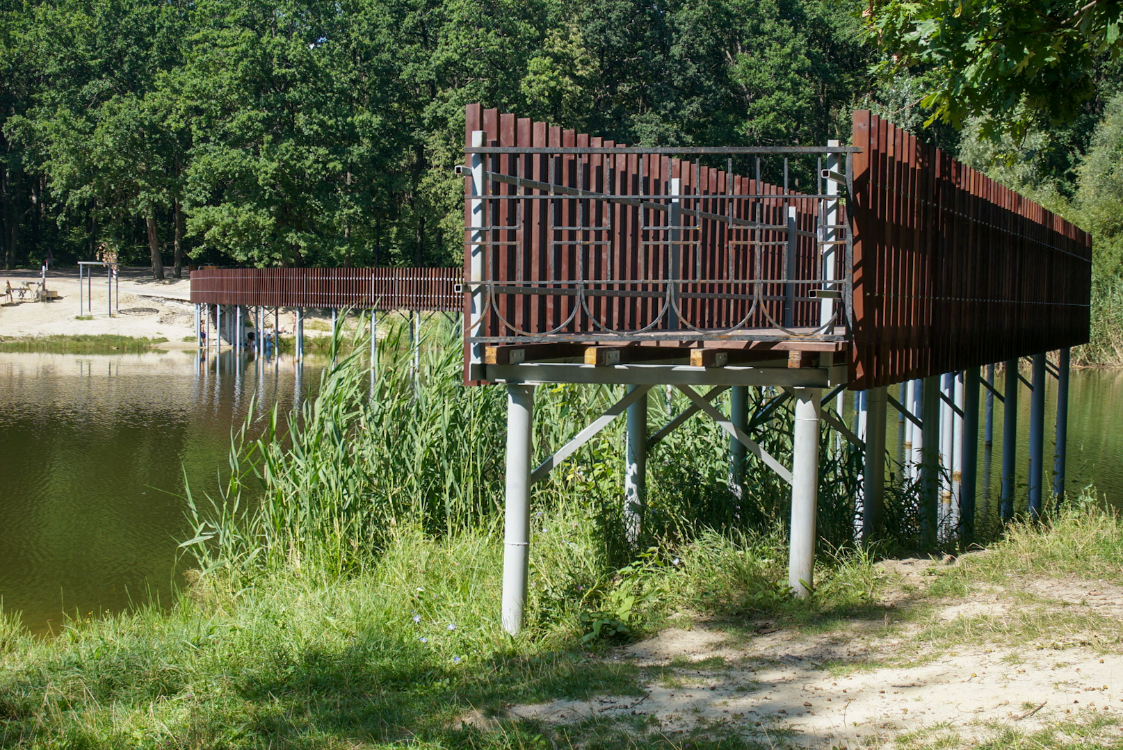 В прошлом году конструкцию заменили на более основательную, металлическую. Однако пройти по нему до сих пор нельзя – он находится на высоте примерно полутора метров от земли. Чтобы туда не добрались наиболее гибкие посетители парка, на краю моста поставили решётку.