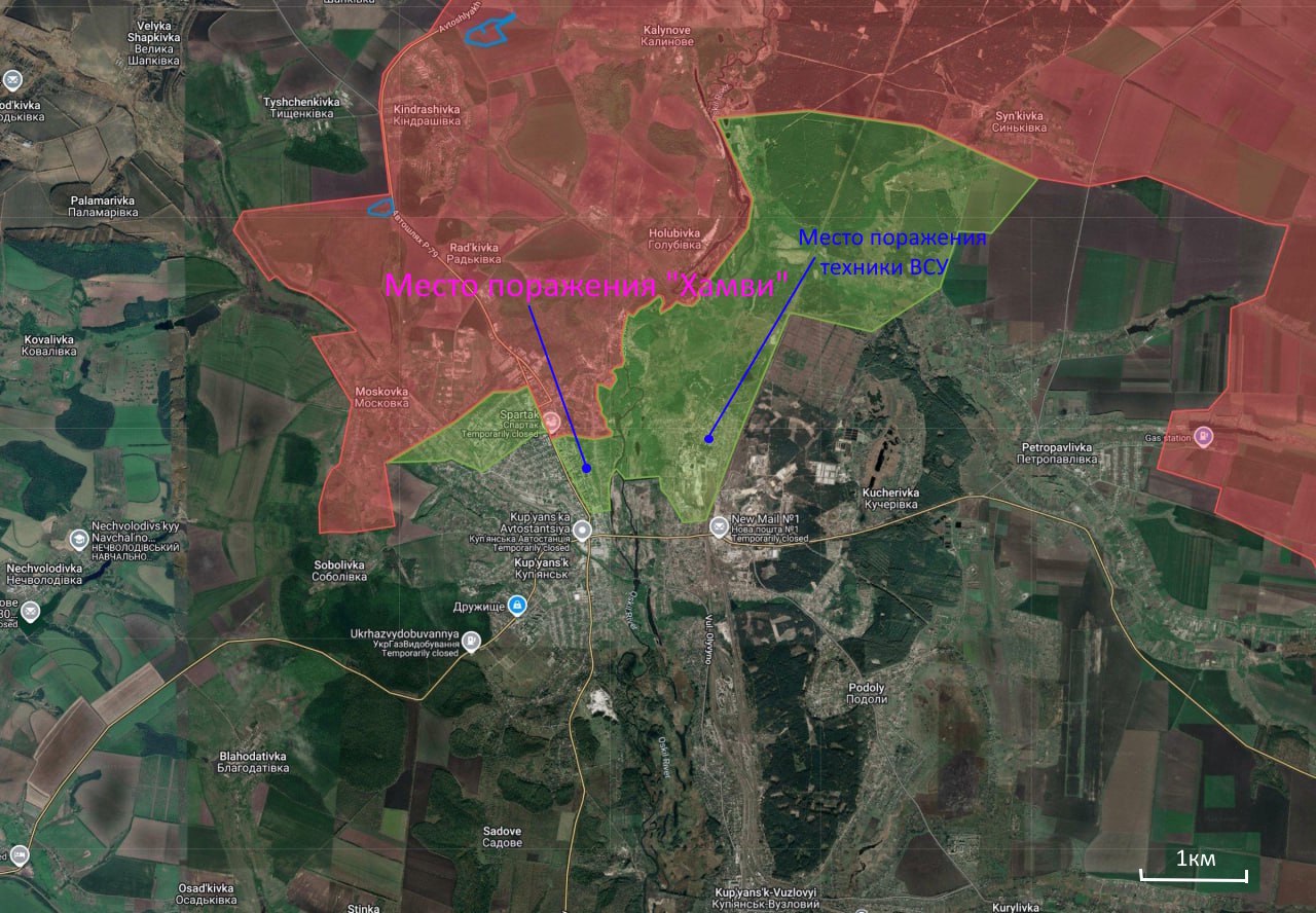 Как и сказано в заглавии, с такой скоростью занятия Купянска главное город незаметно не проскочить. Если завтра столько же пройдем, то уже точно выйдем за южные окраины (и то при условии, что в предыдущие четыре дня мы стояли на месте).