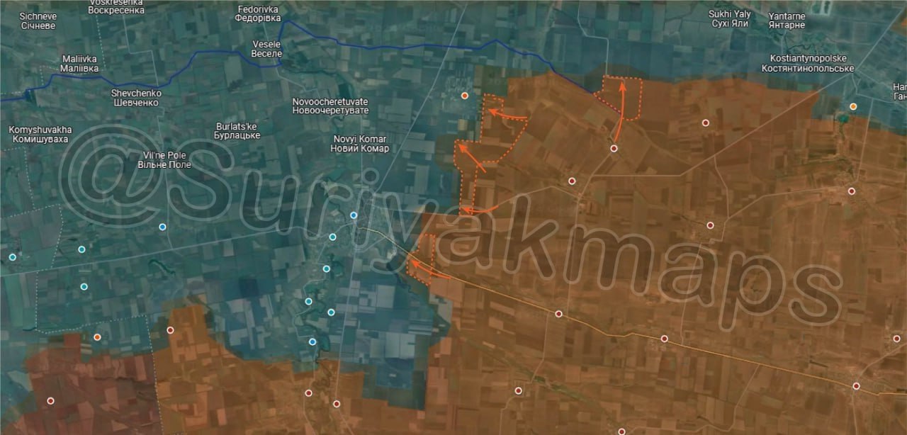 Российская армия улучшила позиции к востоку от н.п. и продолжает освобождение территорий к северо-востоку.