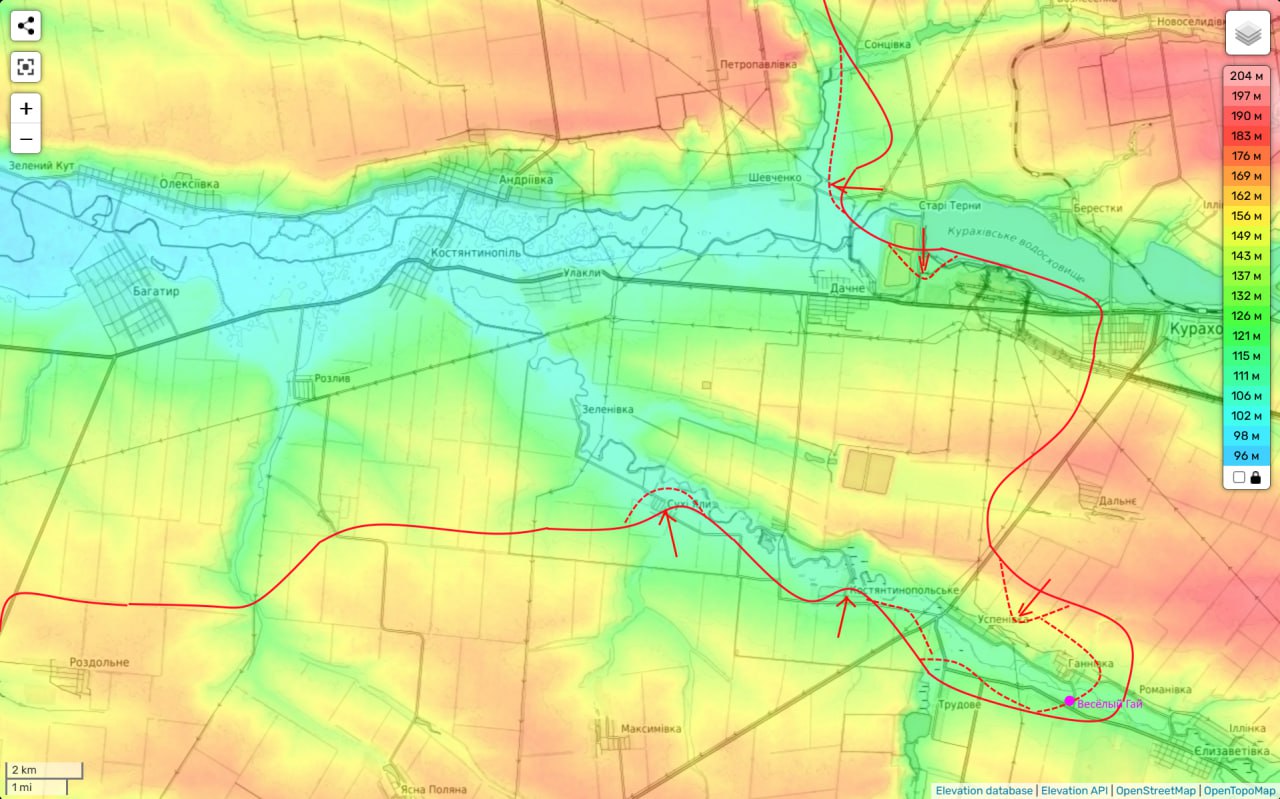 Между тем, наши войска закончили дочищать территорию между Солцевко и Старыми Тернами и обозначилось движение наших сил на н.п. Шевченко и попыткой выйти на Петропавловку. Рельеф, конечно тут трудный, но и атаки ведет 114-я бригада ВС РФ, которая уже не раз доказывала, что она способна творить чудеса.