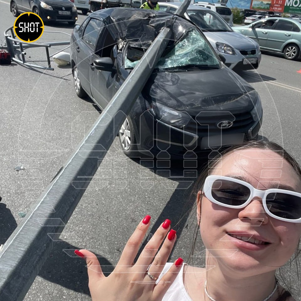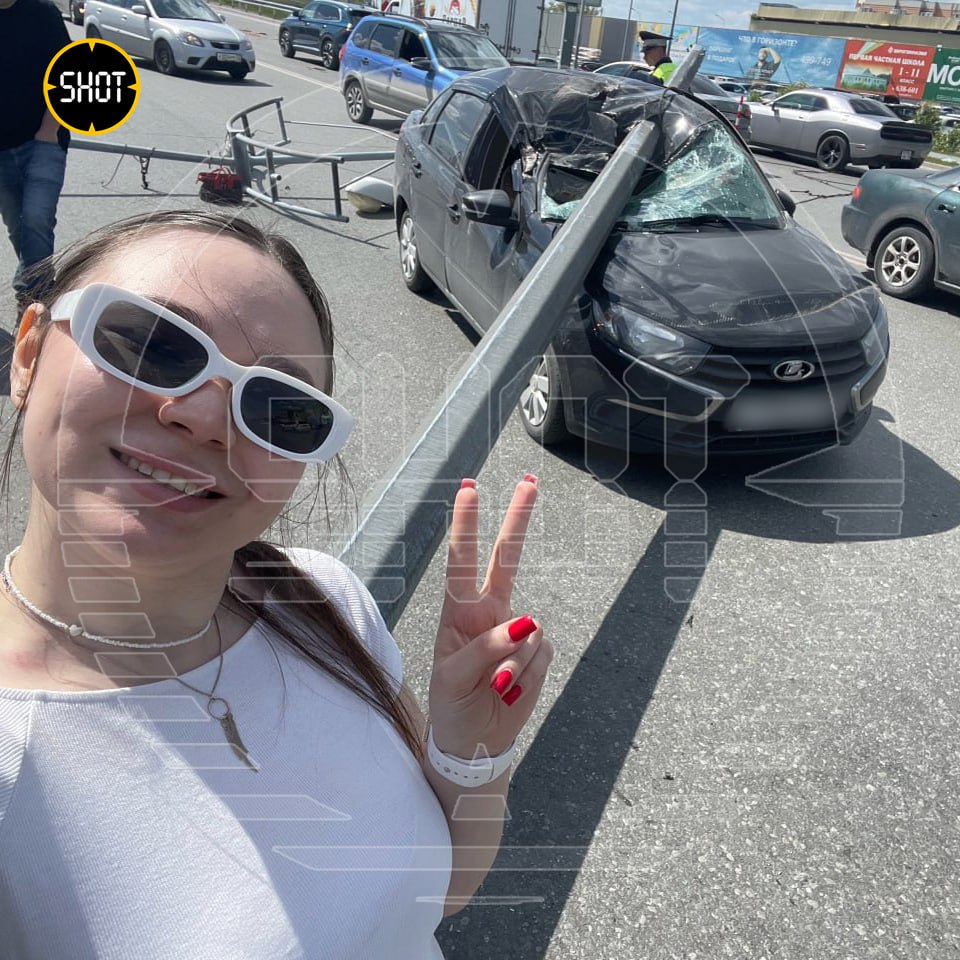 23-летняя Регина чудом не пострадала, когда её "Гранту" насквозь пробил упавший фонарный столб. После ДТП девушка улыбалась и хохотала. Говорит, ехала на защиту диплома, но получила небольшую отсрочку. Будет время подучить.