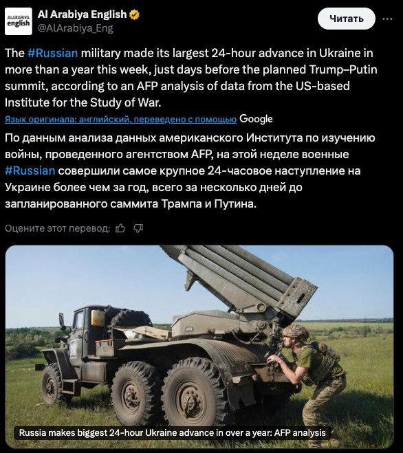 Согласно анализу данных Института изучения войны, проведенному AFP, 12 августа армия России освободила 110 квадратных километров. Это самый высокий показатель с конца мая 2024 года.