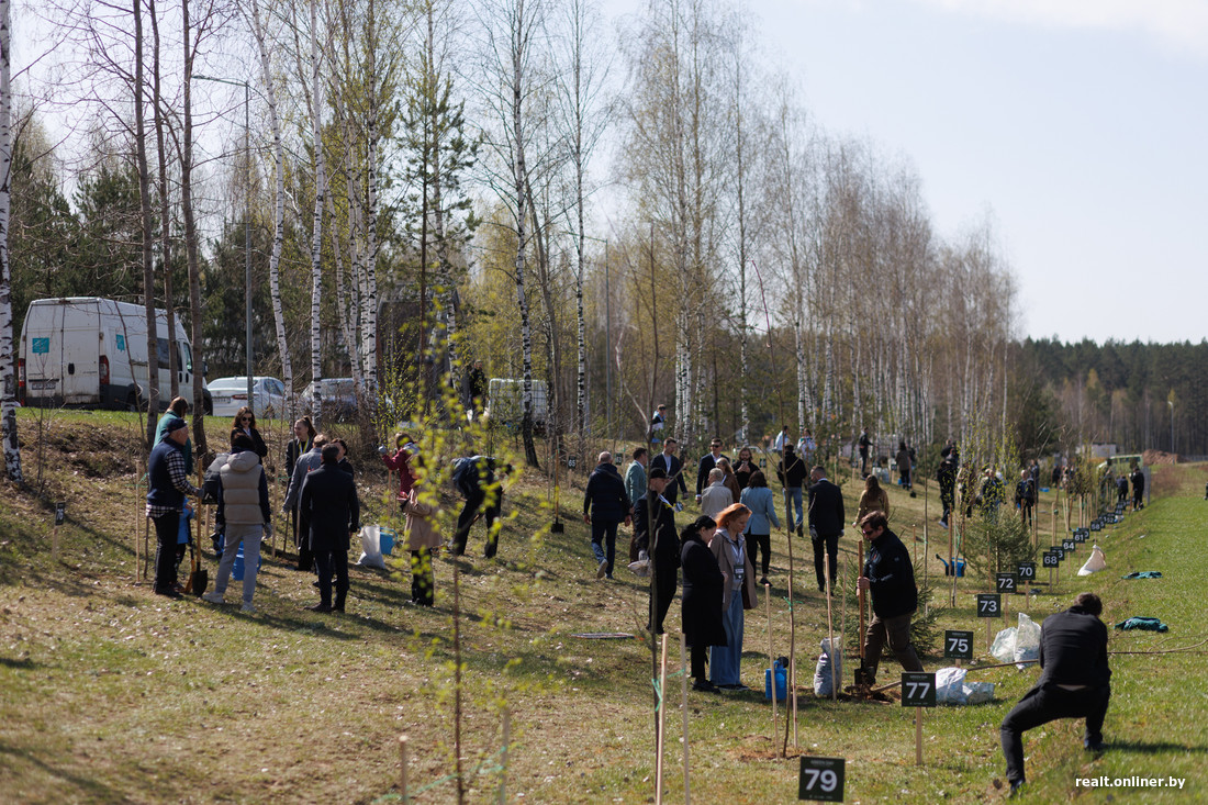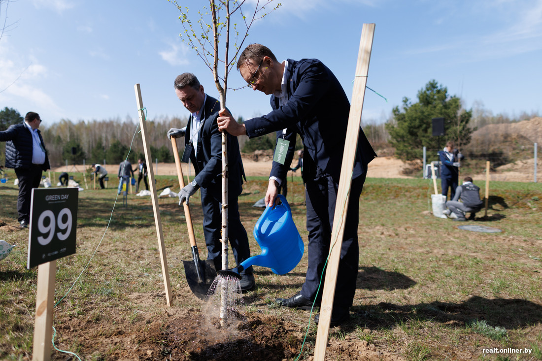 Высадить саженцы собрались более 100 гостей: представители Минприроды, европейских посольств, застройщика и автодилера BMW Belarus. Присоединились к начинанию и владельцы электромобилей.