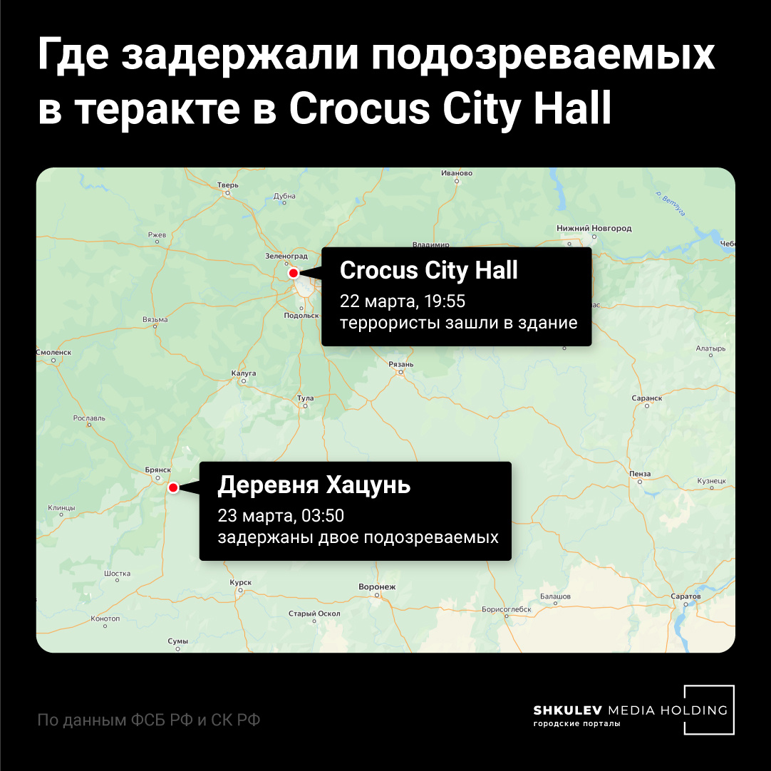 Мы продолжаем онлайн-хронику теракта в концертном зале «Крокус». Последние новости этого часа: