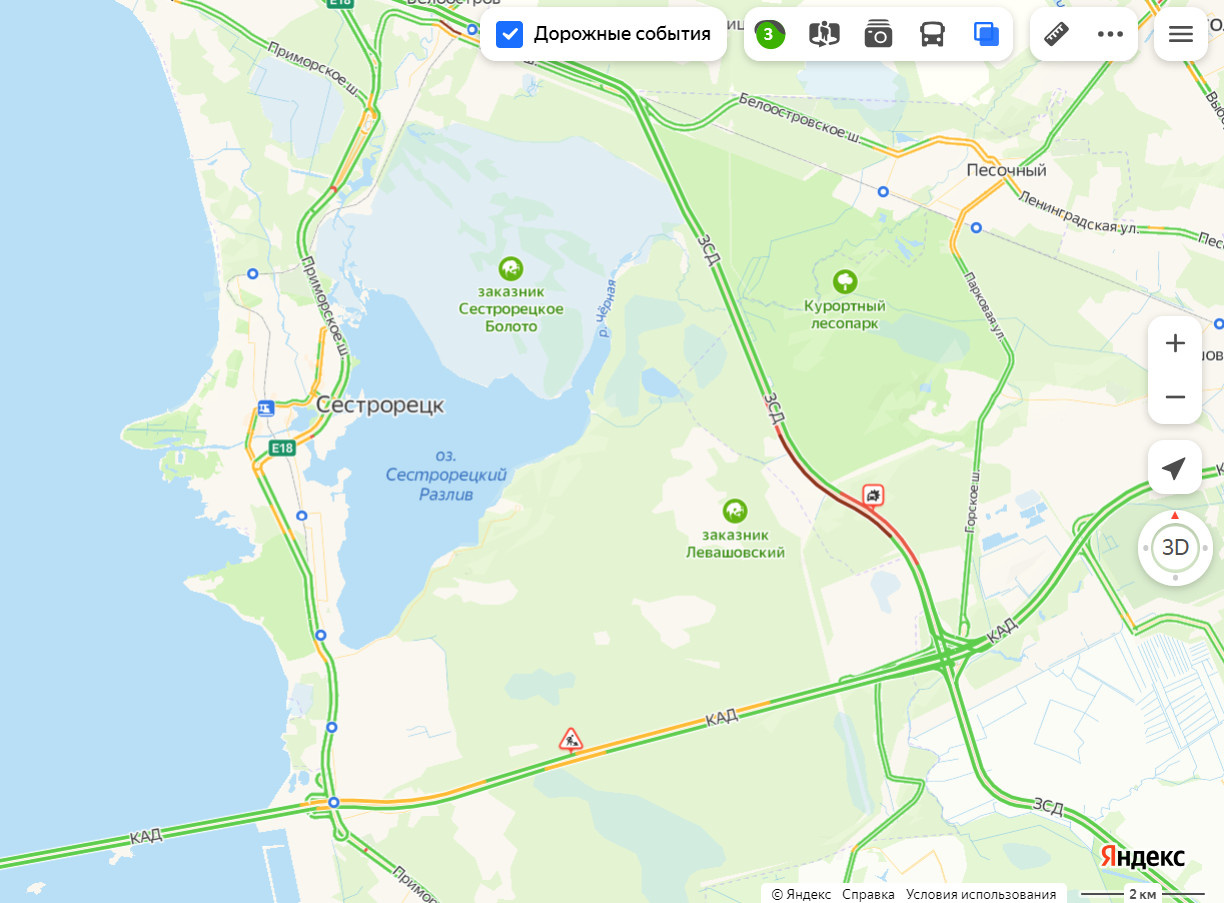 Пробки образовались в обе стороны. В пресс-службе «Магистрали Северной столицы» «Фонтанке» поясняли, что движение в южном направлении на некоторое время закрывали. Уже открыта одна полоса в южном направлении и две из трех — в северном.