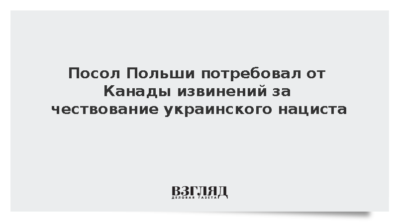 По словам дипломата, Польша, являясь «главным союзником Украины», «никогда не согласится обелить таких злодеев». Он добавил, что как посол ожидает от канадской стороны извинений.
