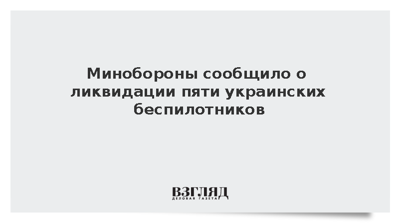 Как сообщили в военном ведомстве, средства противовоздушной обороны с 8.00 до 8.10 уничтожили пять украинских беспилотных летательных аппаратов самолетного типа, передает РИА «Новости».