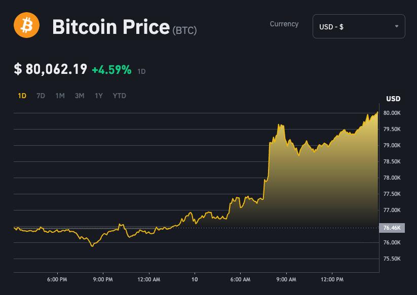 ❗️Стоимость биткойна обновила исторический максимум, превысив $80 тысяч Об этом свидетельствуют данные Binance. Ранее его стоимость впервые в истории достигла $77 тысяч. Подписывайтесь на «Абзац»